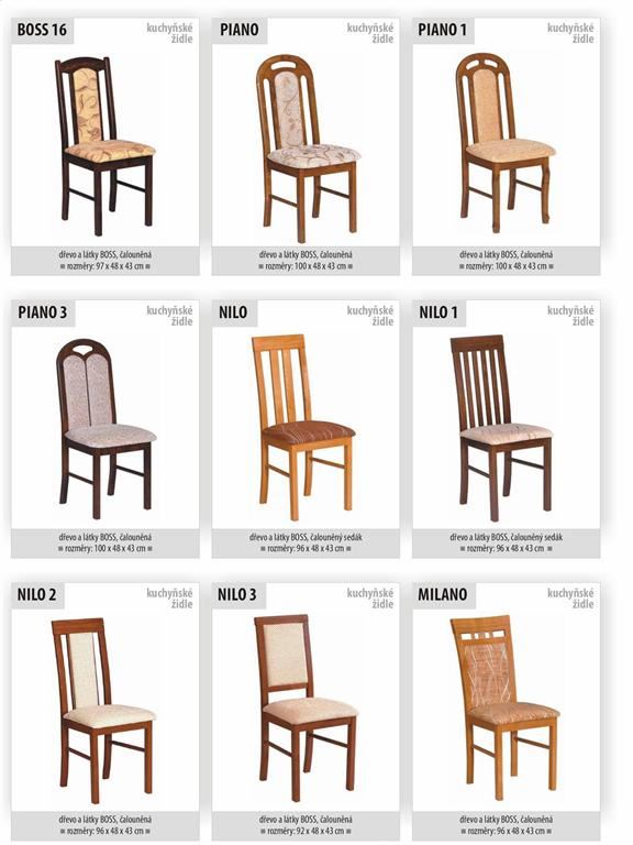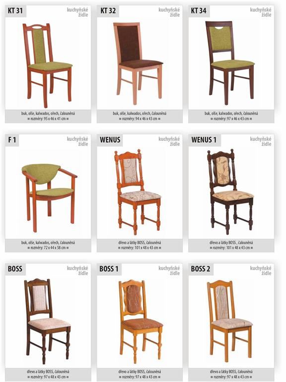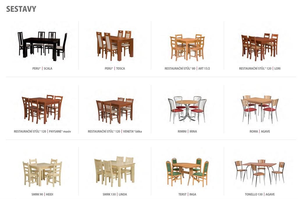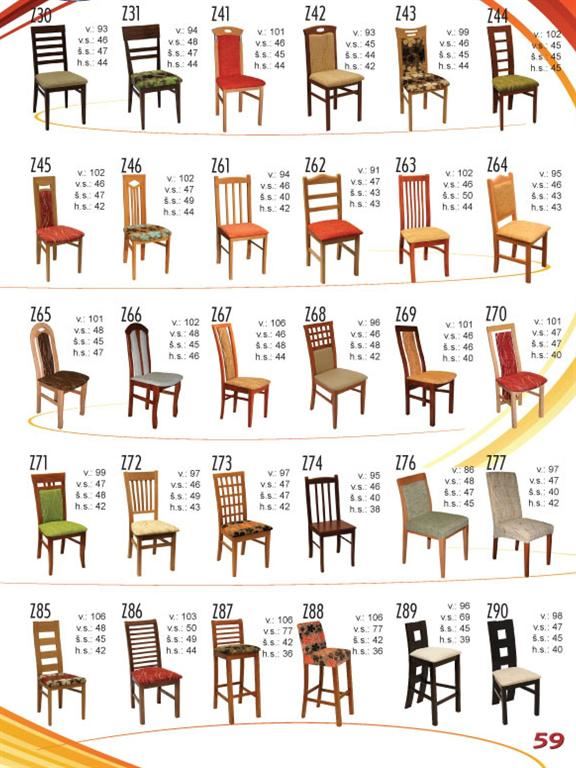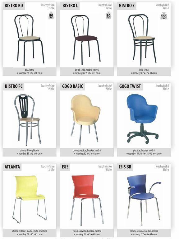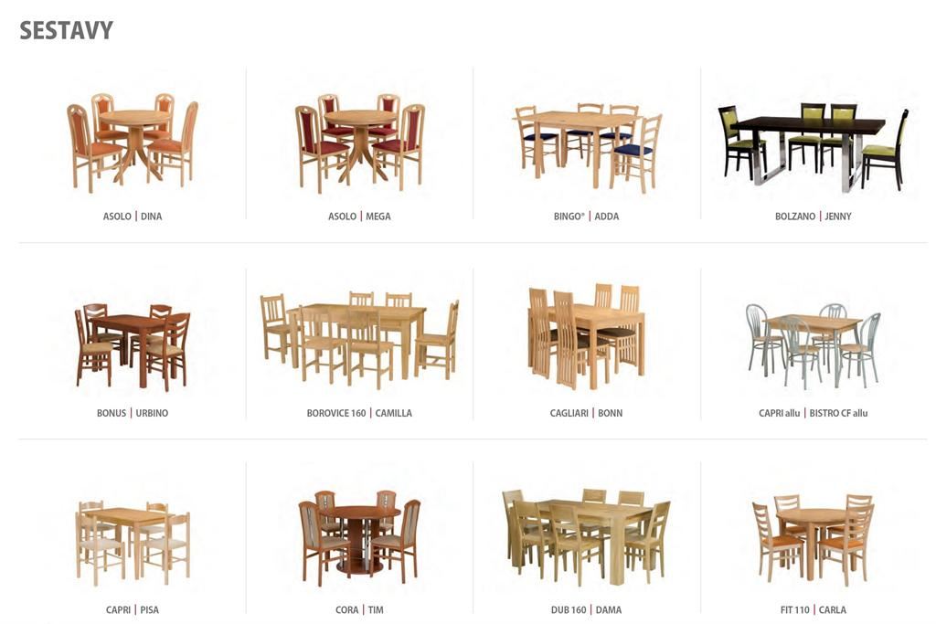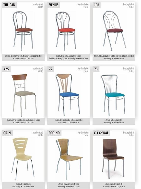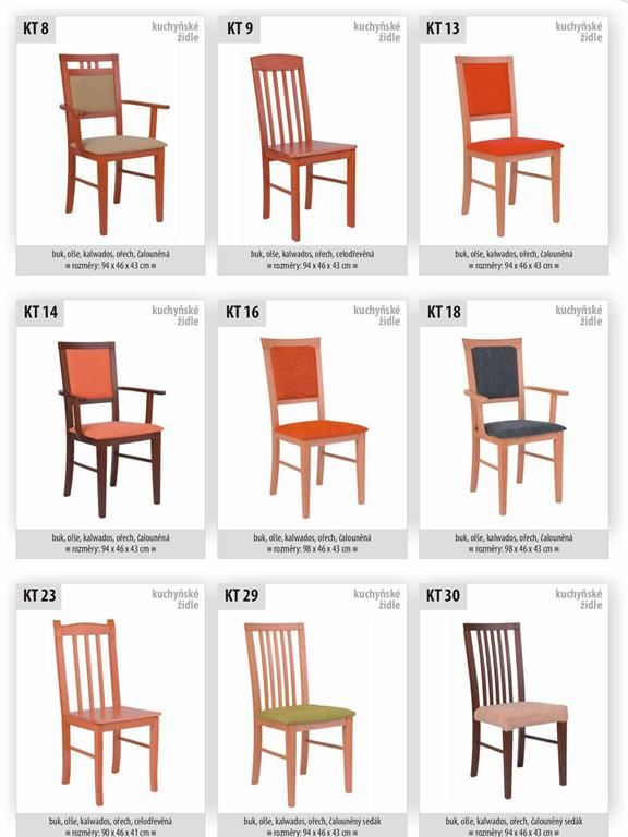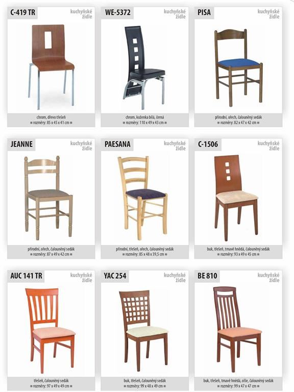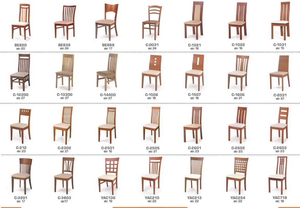 Ukázky některých typů židlí a stolů