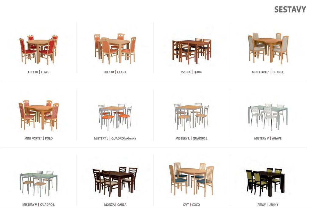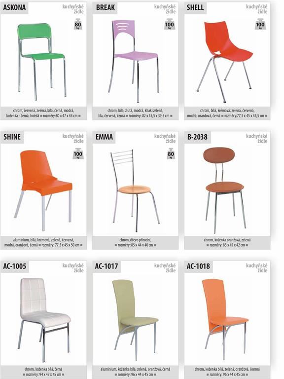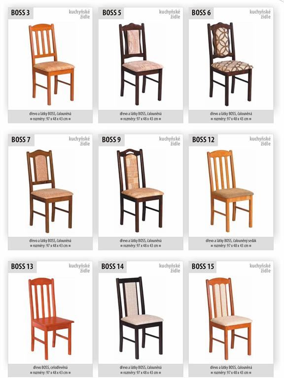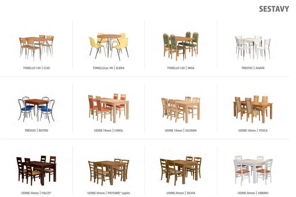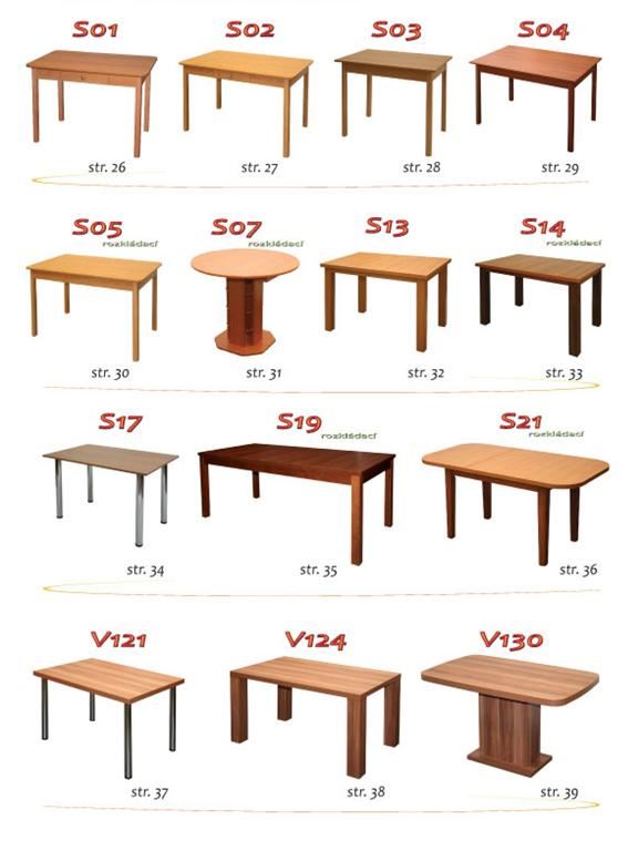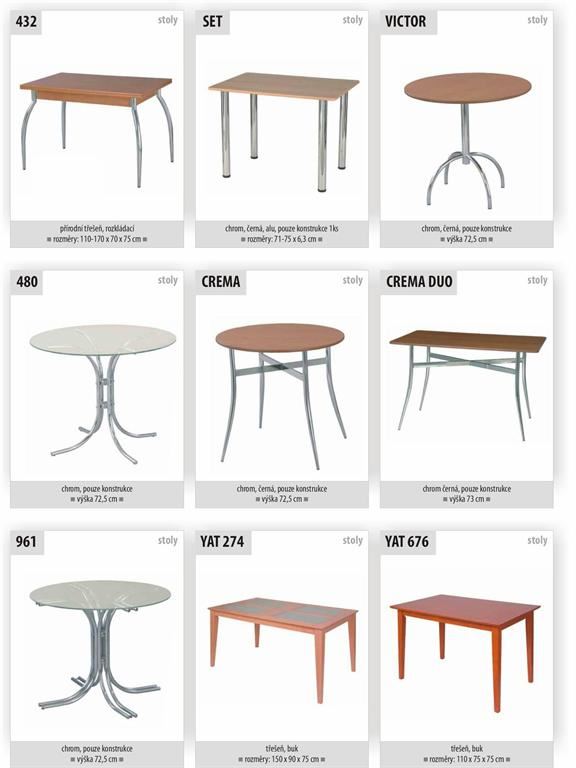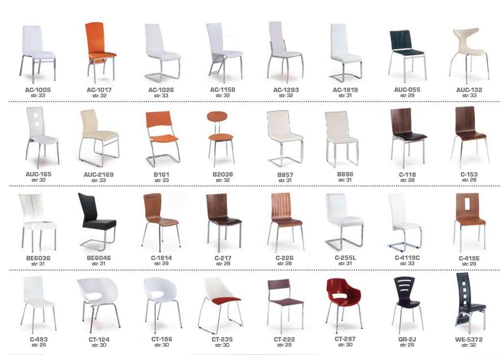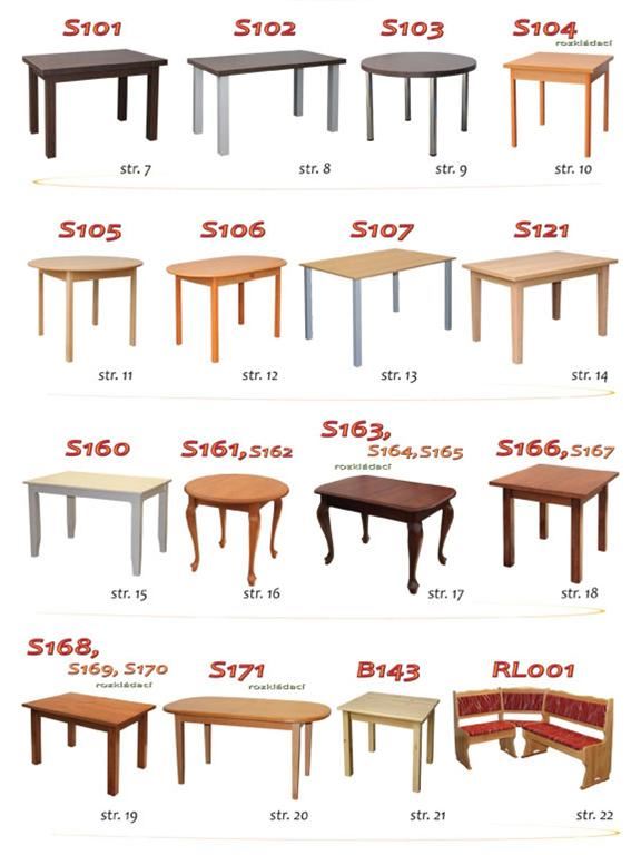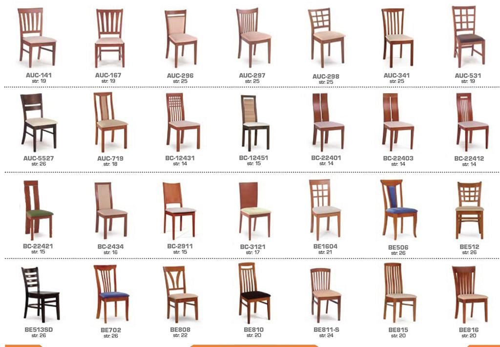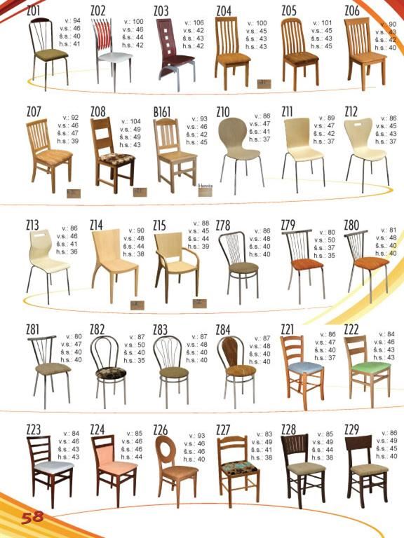 Ukázky některých typů židlí a stolů