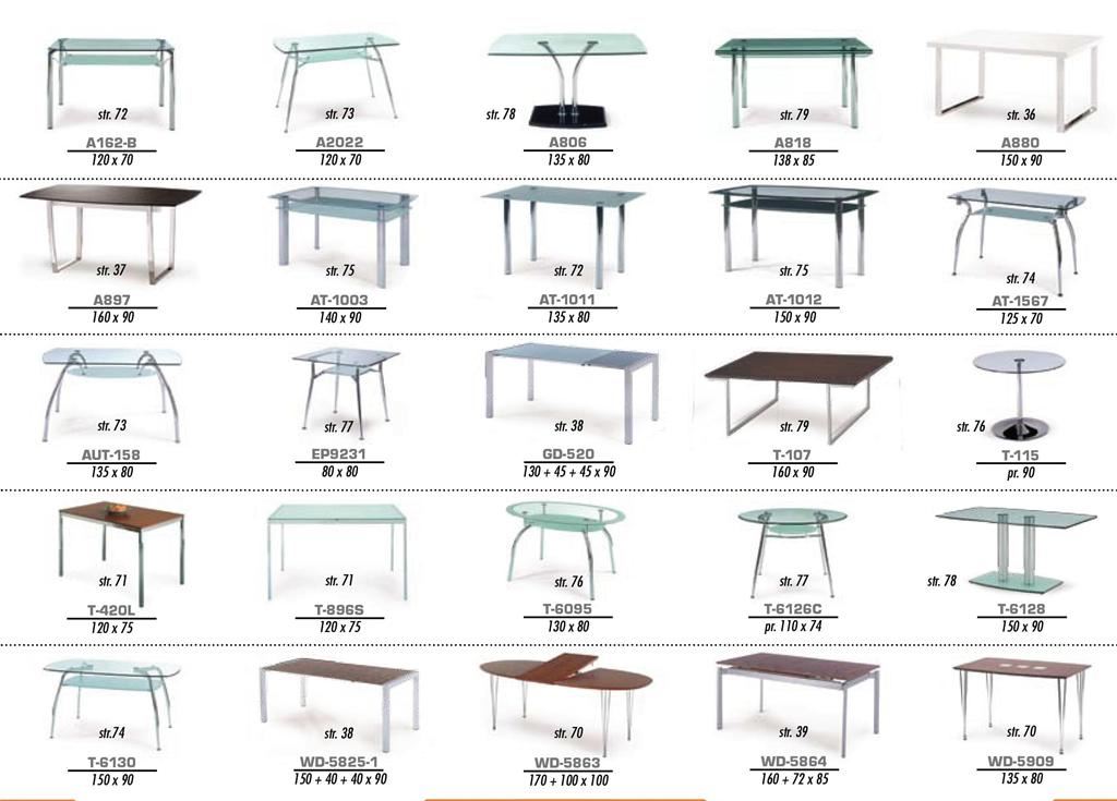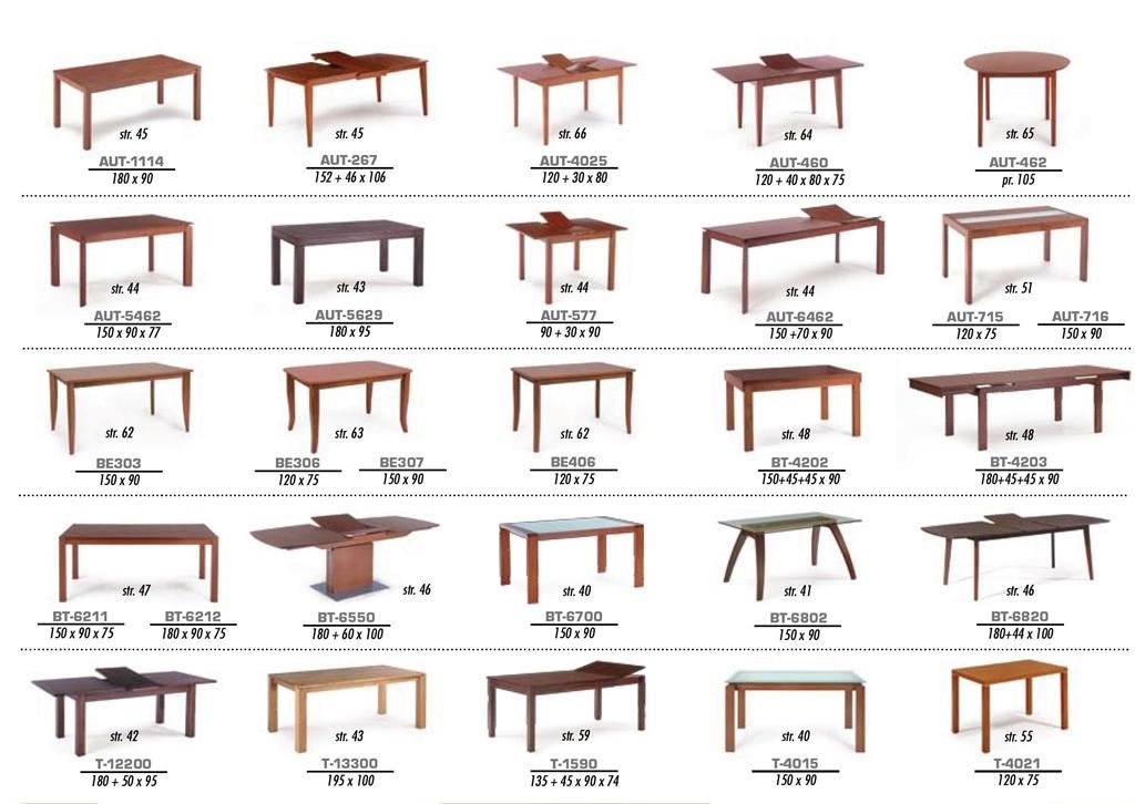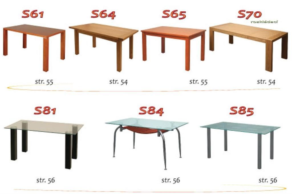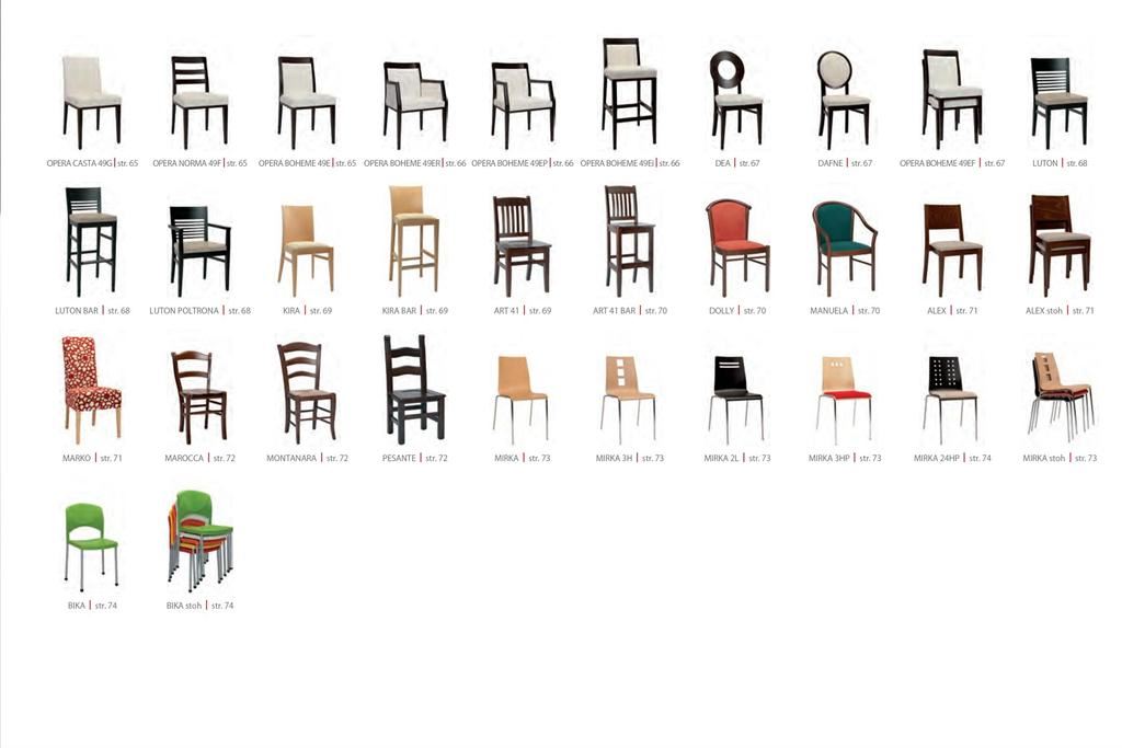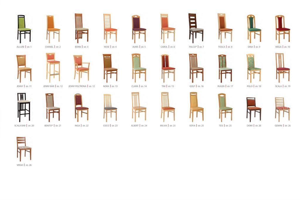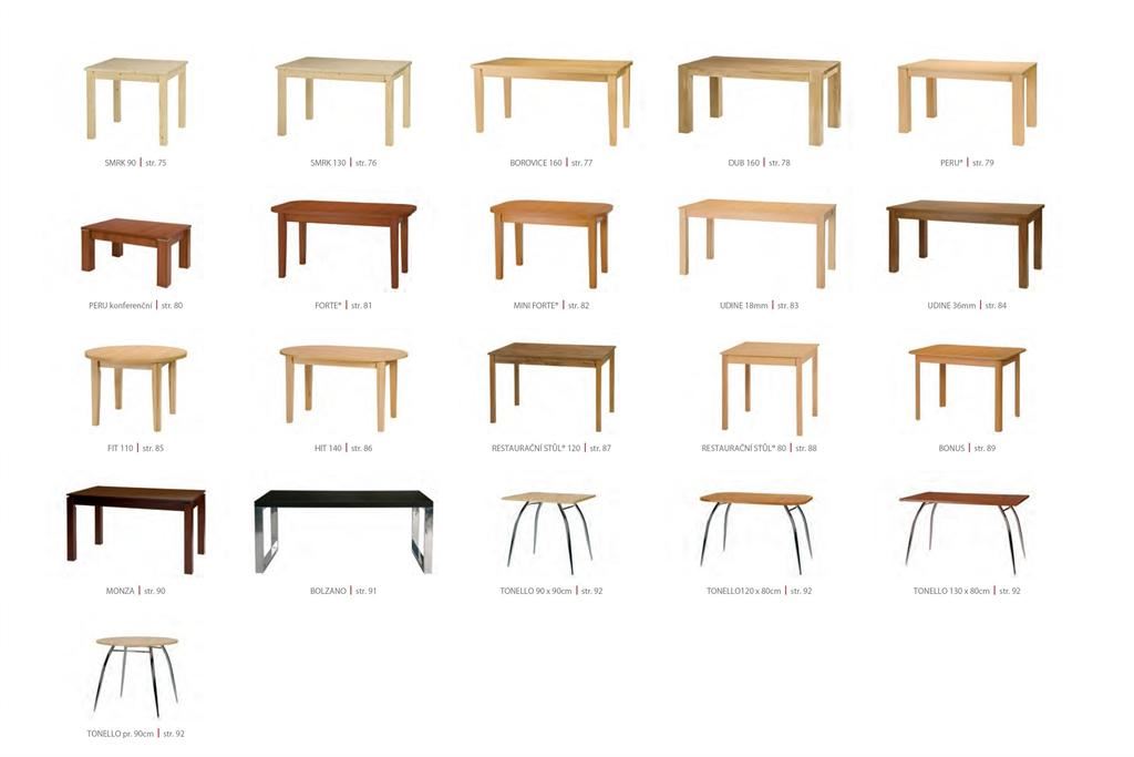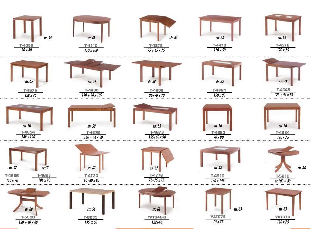 Ukázky některých typů židlí a stolů