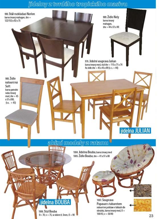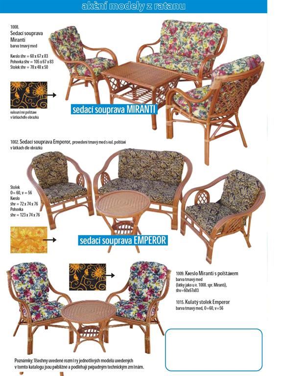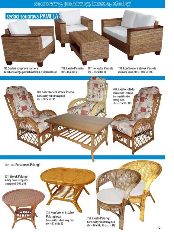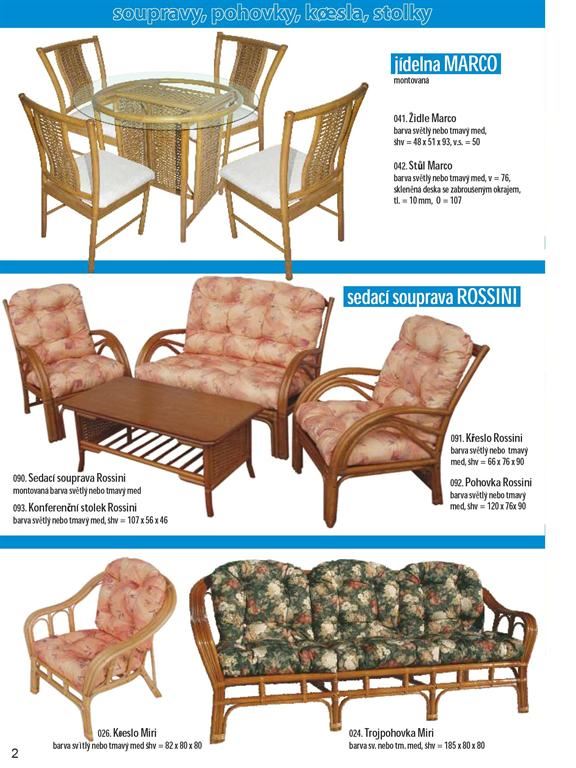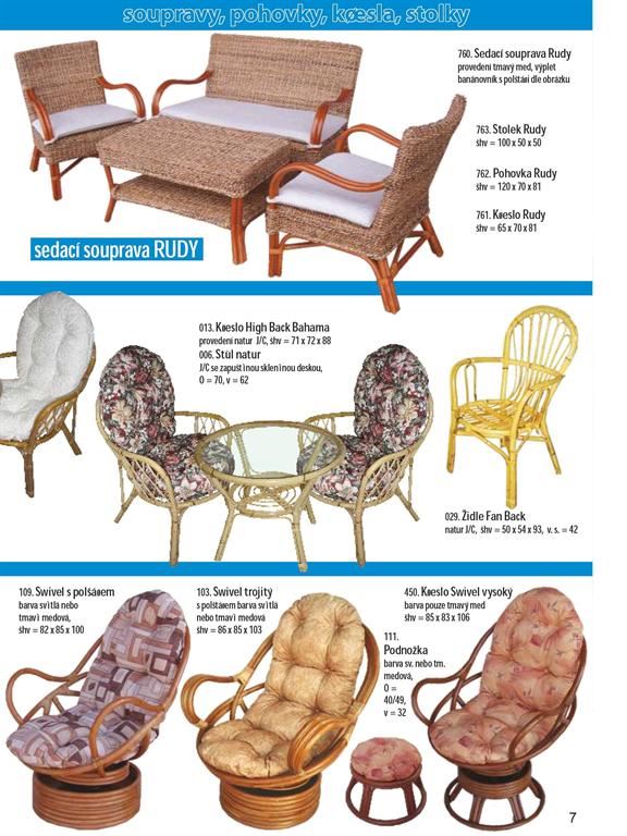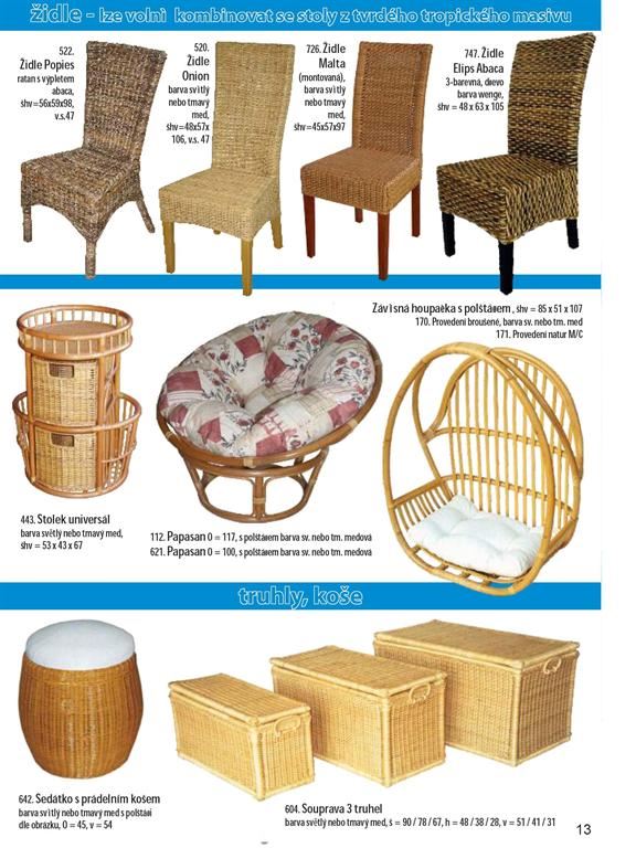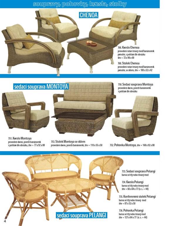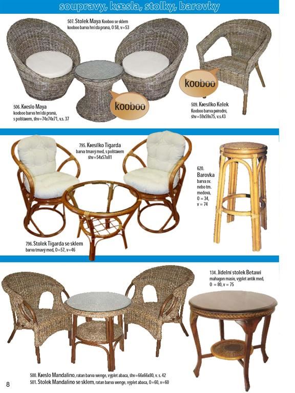 Ratanový nábytek je produkt z přírodního materiálu. Dodáváme široký sortiment ratanového nábytku z oblastí, kde má jeho výroba dlouholetou tradici (Malajsie, Indonésie). Našim sortimentem jsou ratanové sedací soupravy, jídelny, židle, křesla, komody, prádelníky, houpačky, lampy, věšáky, věšákové stěny, regály, závěsné police a bytové ratanové doplňky. Ratanový nábytek je vhodný jak do interieru, tak exterieru. Ratanový nábytek dovážíme již hotový v provedení broušený světlý/tmavý med, přírodní neloupaný a nebroušený a v kombinaci s jinými přírodními materiály (tropické masivy,banánovník,vodní hyacint atd.). Ratanový nábytek se vyznačuje dlouhou životností a snadnou údržbou. Ratanový nábytek je vhodným doplňkem moderních interiérů a neměl by chybět na žádné pergole, nebo v zimní zahradě.